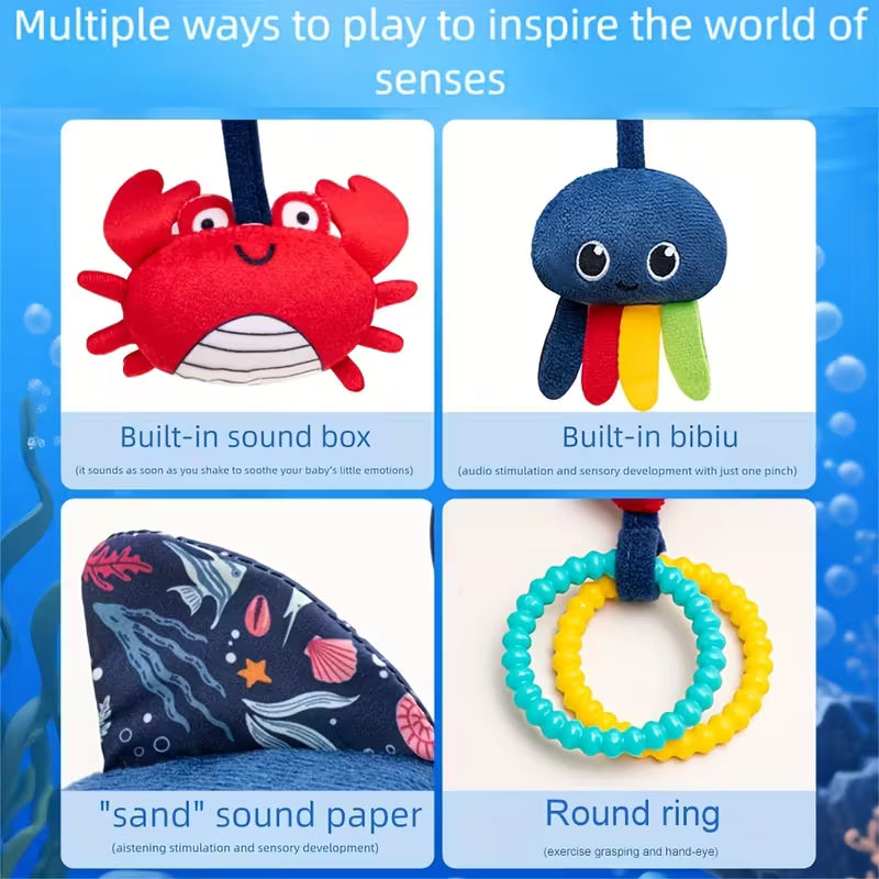 Deze knuffel speciaal voor in de speel gym heeft verschillende vormen en rijke kleuren om de visuele ontwikkeling te stimuleren.